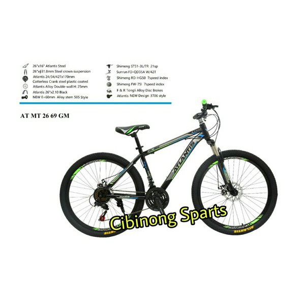 Sepeda atlantis speed 7. Harga murah di lapak cibinong sparts. Sepeda gunung cocok digunakan untuk medan yang berbatu dan curam sehingga cocok untuk naik dan turun bukit. Sepeda ini merupakan produk hard tail mountain bike dengan fram terbuat dari steel.
