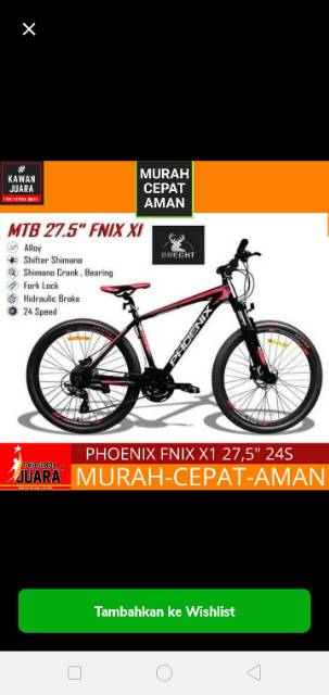 Rp 4 800 000 sepeda gunung mtb phoenix fnix x1 27 5 murah bandung.