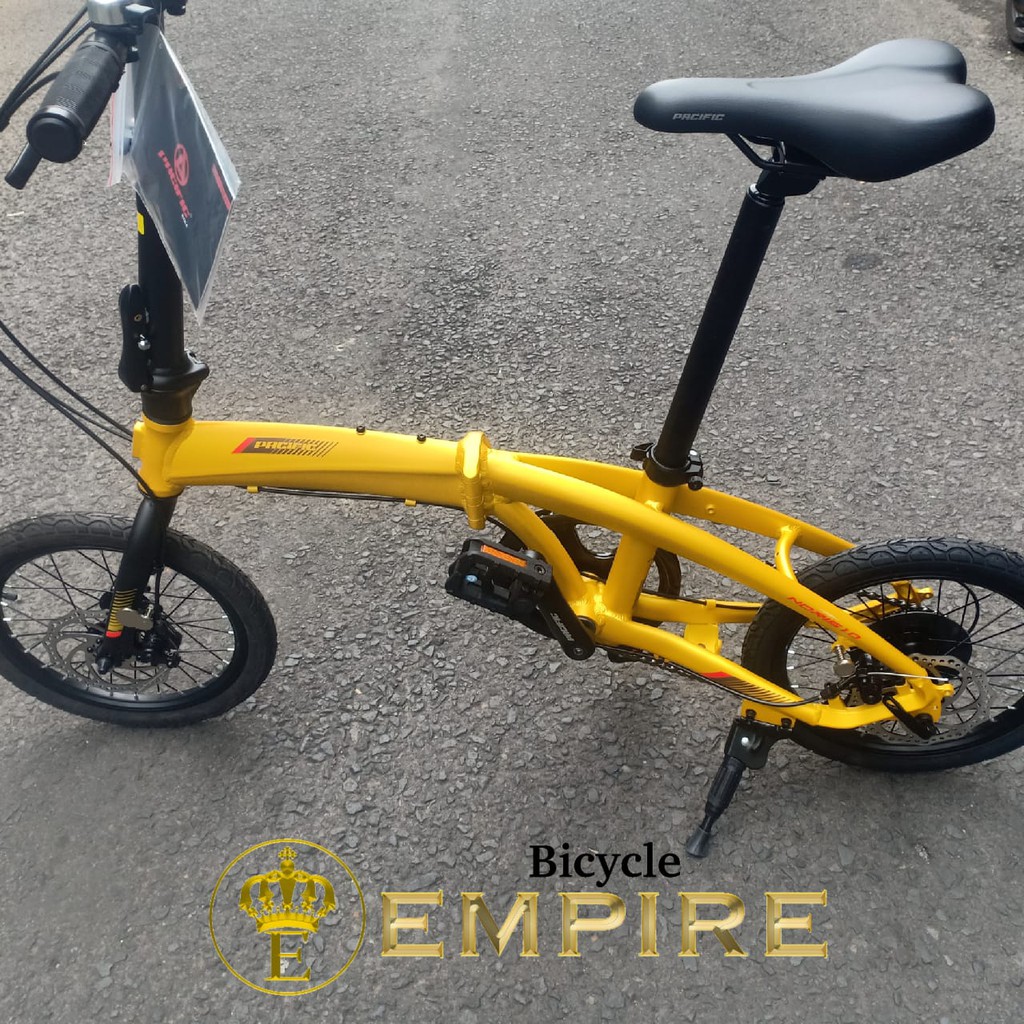 Frame 16 alloy 6061 folding frame fork 16 hi ten steel fork shifter shimano tourney sl tx50 7 speed rear derailleur shimano tourney rd tz500 7 speed front rear brakes pacific mechanical discbrake freewheel 14 28t pedal folding pedal crankset pacific alloy 52t bottom bracket. Harga murah di lapak toko sepeda maju jaya. Pacific noris 2 3 16 sepeda lipat readyrp4 999 000.