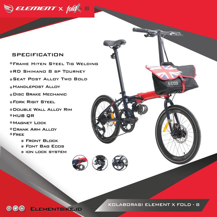 Sepeda lipat element foldx eight. Video ini berisi ttg komparasi sepeda lipat terbaru pacific esplendid vs element foldx detail perbedaanya harga dan berat kesimpulan ttg video tsb. Sepeda lipat element foldx 8 folding bike elementrp4 000 000. Sepeda element foldx 8 terbuat dari material hiten steel yang kuat dan tahan banting dengan ukuran ban 20 inci sepeda ini cocok untuk remaja dan dewasa.