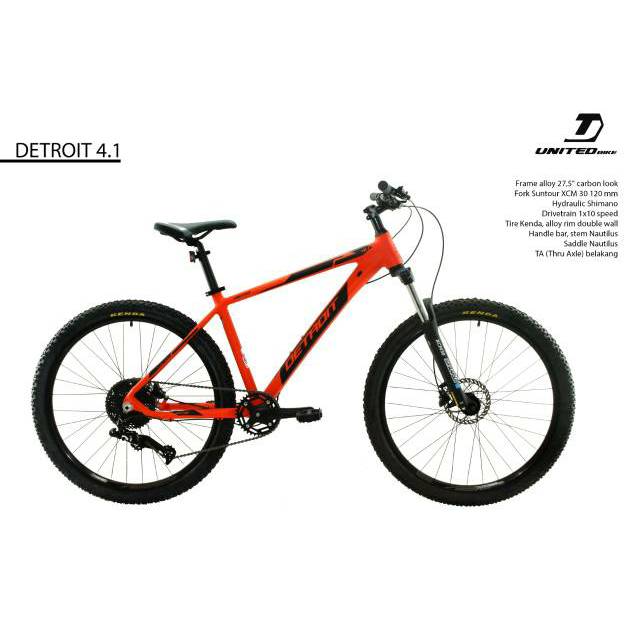 Sepeda united detroit 4 1 dilengkapi dengan frame alloy yang ringan dan tahan karat dengan proses smoothing yaitu penambahan primer sehingga terlihat seperti tanpa las an. Sepeda mtb united detroit 6 1 12s 27 5 inchi rp6 800 000 karanganyar lapak sepeda juara. Memiliki 10 opsi kecepatan untuk menghadapi berbagai kondisi jalan dan memberi fleksibilitas dalam berkendara dilengkapi dengan rem hydraulic dari shimano untuk performa pengereman dan keamanan yang optimal.