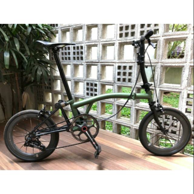 Sepeda onthel warna hijau army. Sepeda ini kondisi baru. Sepeda termasuk lampu dinamo pompa dan stopan belakang tapi pas difoto aksesoris tersebut belum terpasang. Sepeda yang pada masa tahun 70an 90an menguasai pasar indonesia dan menggusur popularitas sepeda dari belanda inggris jepang maupun india.