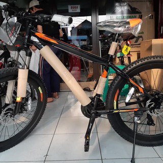Size 17 color black orange gray green black blue frame hi ten steel mtb xc 27 5 fork pacific xrace suspension fork 27 5 travel 110 mm lock out shifters shimano ef500 3x7. Shimano tourney fd tz500 3. Pacific invert 100 vt sepeda mtb 27 5 inch merupakan sepeda mtb yang didesain sporty trendy dengan material frame besi yang kuat dan tahan banting serta dengan 21 speed dan dengan ukuran ban 2 20 sehingga cocok untuk medan jalan raya dan sedikit off road.