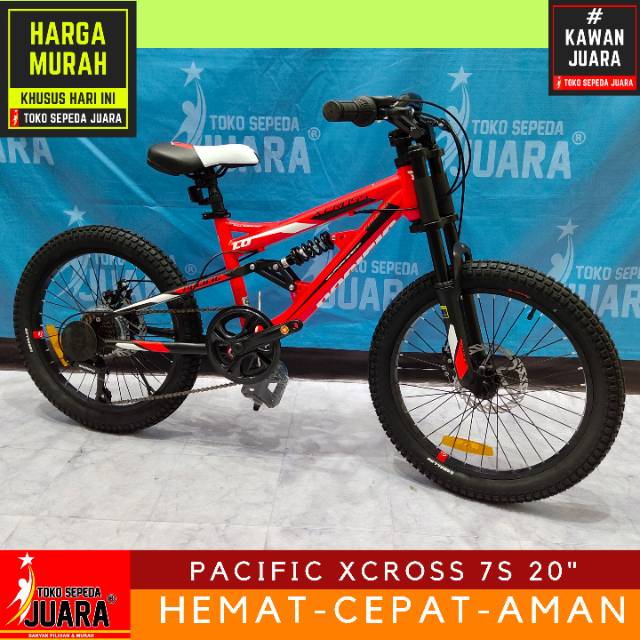 Cari produk sepeda gunung lainnya di tokopedia. Belanja sepeda gunung pacific x cross 1 0 dual suspension mtb 8 tahun remaja 20 inci steel fork susp 7sp disc brake. Sepeda pacific termasuk salah satu sepeda yang menjadi favorit karena harga sepeda pacific murah dan lebih terjangkau oleh masyarakat indonesia.