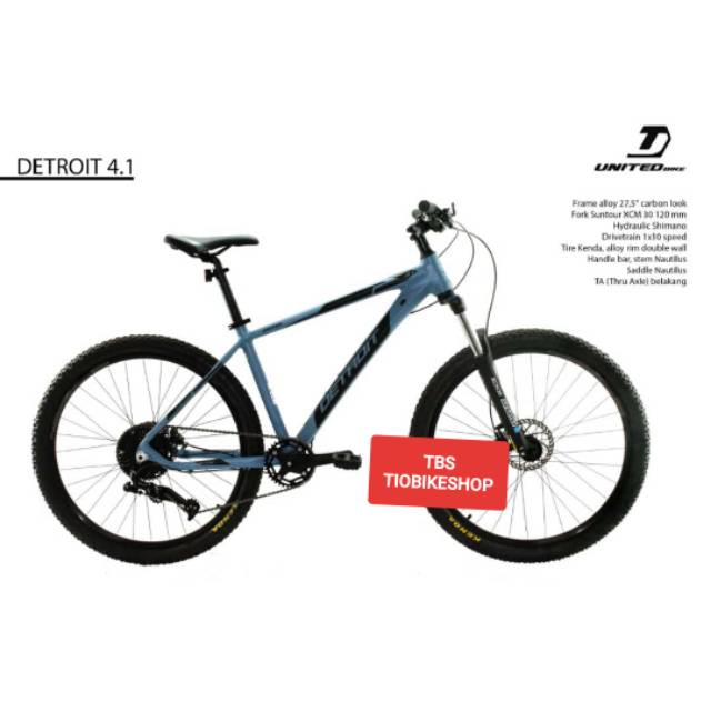 Sepeda united detroit 1 ukuran 27 5 inci sepeda united detroit 1 27 5 ini dibekali dengan rangka alloy yang ringan dan tahan karat dilengkapi 8 x 3 pilihan kecepatan dari niseko dan sistem pengereman sudah menggunakan cakram mekanik.