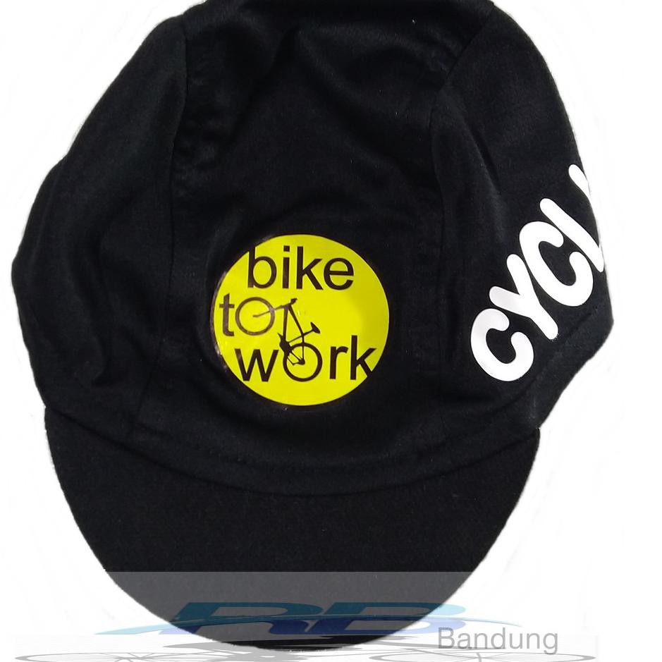 Terbaru cycling cap topi sepeda bike to work. Cycling cap sangat populer di antara para road biker. Nah penggunaan cycling cap ini akan mencegah keringat mengalir ke wajah anda.
